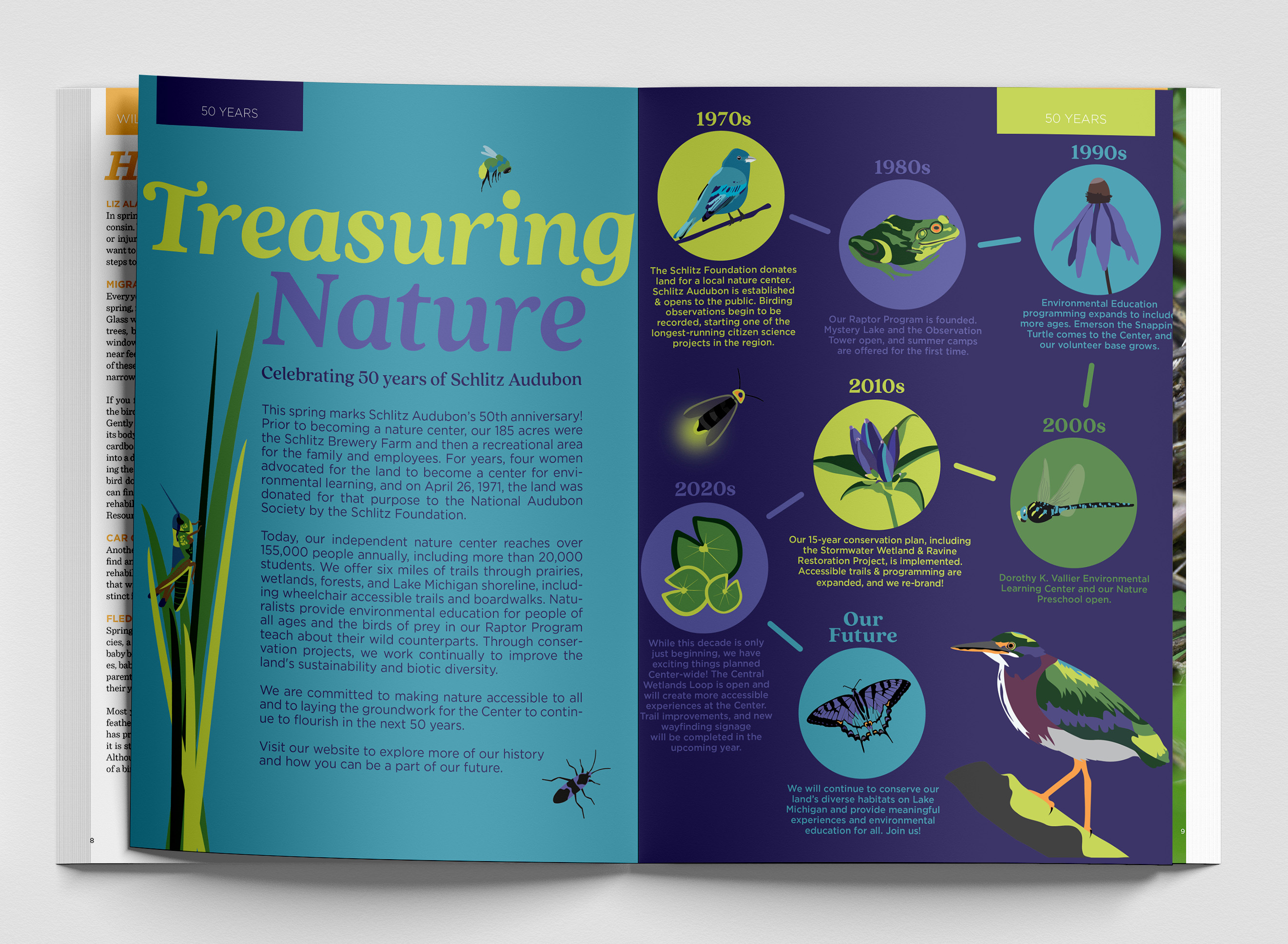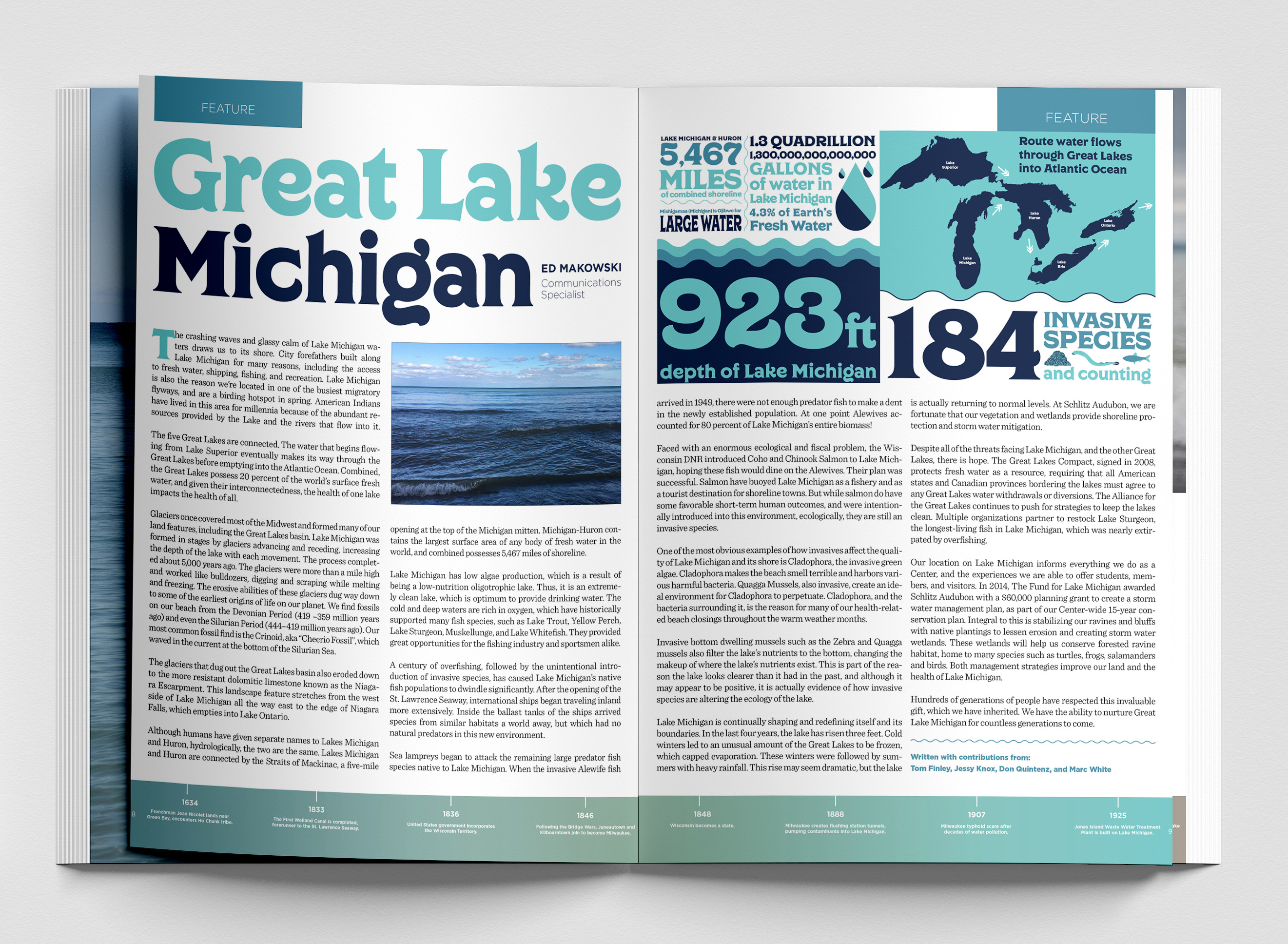 Before Winter of 2015, Schlitz Audubon had a typical templated black and white newsletter common of nature centers. It did not tell the story of the amazing natural phenomena that occur on the land, or in southeastern Wisconsin. It was a missed opportunity.